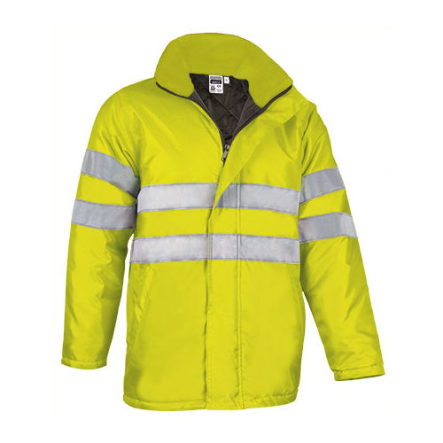 Εξωτερικό αδιάβροχο ύφασμα με επίστρωση πολυουρεθάνης. Επένδυση στο εσωτερικό με επένδυση 200 grs / m2. Ραμμένες αναδρομικές αντανακλαστικές ζώνες γύρω από το σώμα και τα χέρια. Κεντρικό κλείσιμο με διπλό φερμουάρ. Κεντρικό πακέτο με κουμπώματα. Περιλαίμιο με επένδυση από μανίκι (πιο άνετο). 2 κάτω τσέπες. Εσωτερική τσέπη με φερμουάρ. Κουκούλα με ρυθμιζόμενο κορδόνι περίσφιξης κρυμμένο στο λαιμόκοψη. Εσωτερικά μανίκια μανικιών (πιο εργονομικά). 10 μονάδες ανά κουτί: 1 μέγεθος, 1 χρώμα. Ατομική τσάντα.