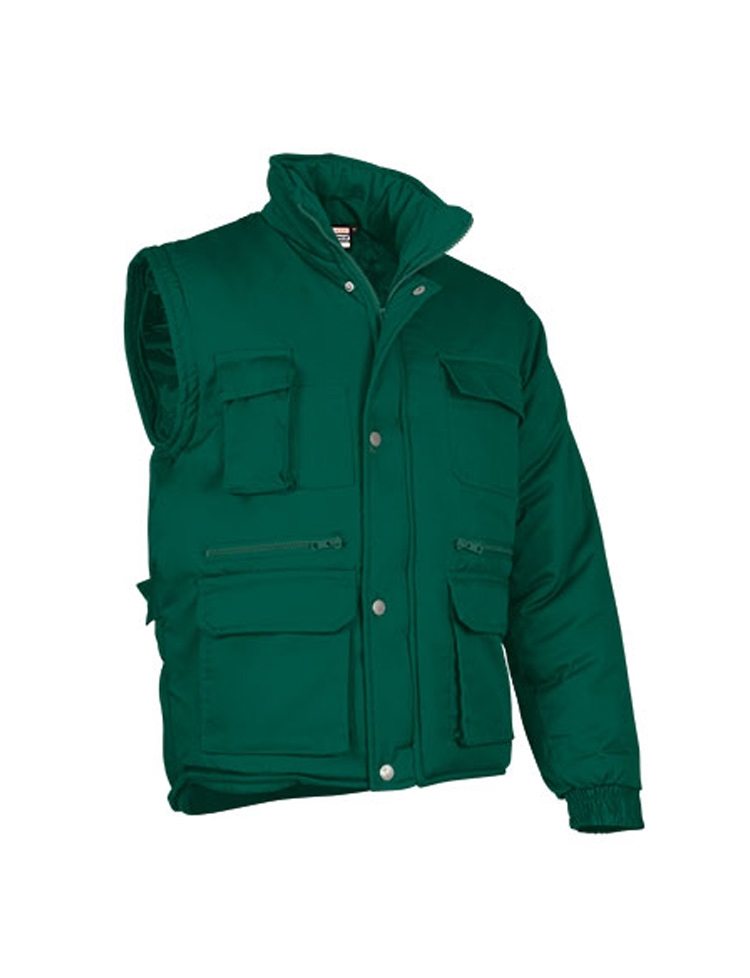 Εξωτερικό ύφασμα 65% πολυεστέρας, 35% βαμβάκι, 200 grs / m2 ύφασμα twill. Επένδυση 100% πολυεστέρας 220 grs / m2. Υψηλό κολάρο με συνολικό φερμουάρ. Αποσπώμενα μανίκια με φερμουάρ. Μακρύτερη πίσω πλευρά. 8 εξωτερικές τσέπες. 1 εσωτερική τσέπη. 2 διαμερίσματα στυλό. Δεξιά τσέπη στο στήθος για τηλέφωνο. Πίσω πλευρικοί ρυθμιστές. Πλάτος πλάτης για εκτύπωση.