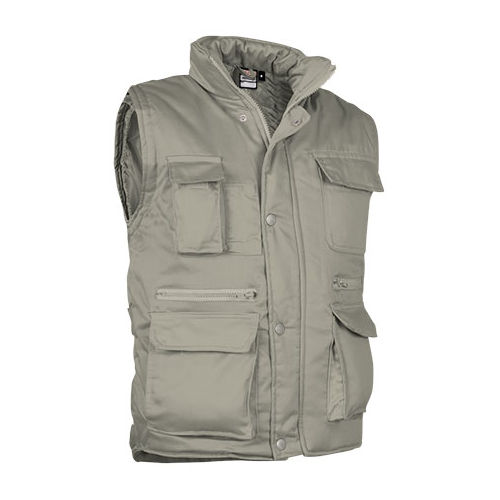 Έξω από 65% πολυεστέρα, 35% βαμβάκι, 200 grs / m2 ύφασμα twill. Επένδυση 100% πολυεστέρας 220 grs / m2. 8 εξωτερικές τσέπες. 1 εσωτερική τσέπη. 2 διαμερίσματα στυλό. Δεξιά τσέπη στο στήθος για τηλέφωνο. Υψηλό κολάρο με συνολικό φερμουάρ. Πίσω πλευρικοί ρυθμιστές. Πλάτος πλάτης για εκτύπωση. Πίσω πλευρά περισσότερο. Οπή βραχίονα στο εσωτερικό του καλύμματος. 20 μονάδες ανά κουτί: 1 μέγεθος, 1 χρώμα. Ατομική τσάντα